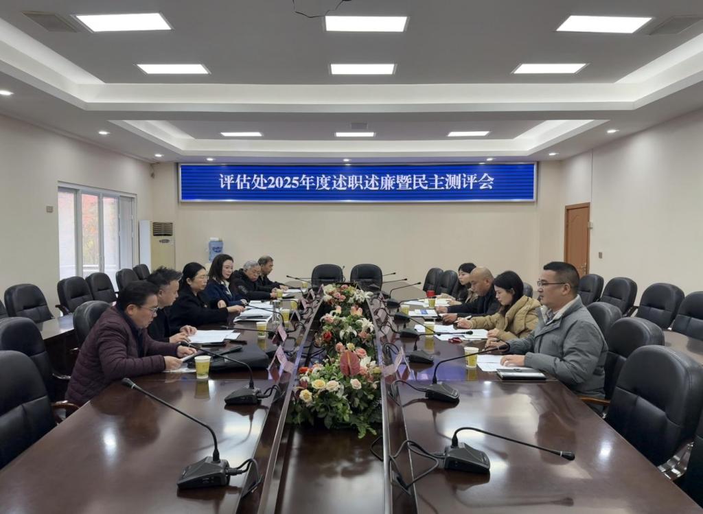 1月5日,评估处2025年度述职述廉暨民主测评会在莲湖校区弘德楼三楼会议室召开。会议由评估处党支部书记靳浪主持,副校长程碧英出席会议并作点评总结,评估处全体人员参加会议。